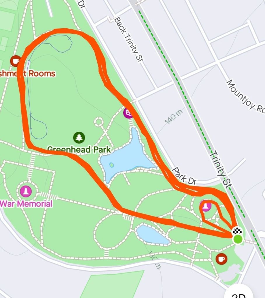 Runners are paired together, ideally one faster than the other. The runners set off in opposite directions of a loop. Once they meet, they then turn around and head back to the start. Greenhead Park isn’t flat, one way was hillier than the other so runners swapped halfway through.