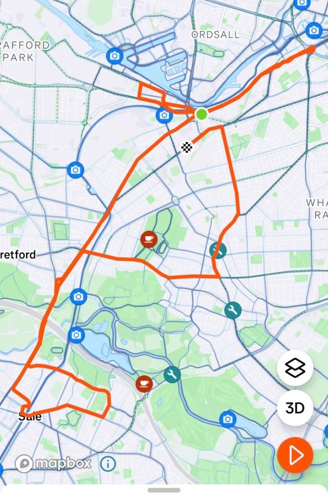 I won’t lie, that was kind of the route. Lots of main roads running through Stretford, Sale, Chorlton and Old Trafford (probably missed one but ey well).